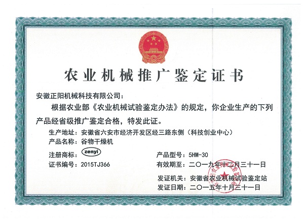 | | 農業(yè)機械推廣鑒定證書(1) | | | | | | | 閱讀次數(shù):3455 返回 | |