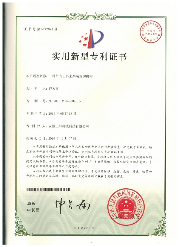 一種帶有出料去雜裝置的機(jī)構(gòu)