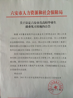 根據(jù)《安徽省高校畢業(yè)生就業(yè)見(jiàn)習(xí)管理辦法》(皖人社發(fā)〔2013〕43號(hào))文件規(guī)定,近日,市人社局公布了新認(rèn)定的2015年市直高校畢業(yè)生就業(yè)見(jiàn)習(xí)基地及其提供的160個(gè)就業(yè)見(jiàn)習(xí)崗位,計(jì)劃接收就業(yè)見(jiàn)習(xí)人員300名。畢業(yè)兩年內(nèi)的未就業(yè)高校畢業(yè)生,可以挑選適合自己的崗位,報(bào)名參加帶薪就業(yè)見(jiàn)習(xí)。安徽正陽(yáng)機(jī)械科技有限公司獲此殊榮。